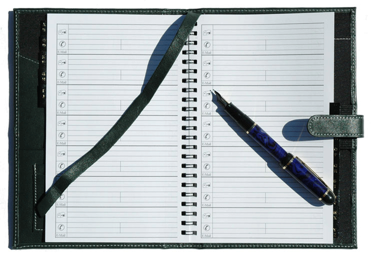 Address Book Insert Wire-o Address Book. Includes 26 sheets with 13 division tabs. Tabs are made from black leatherette. Green leather cover is not included. See below how to buy this premium leather agenda cover.
